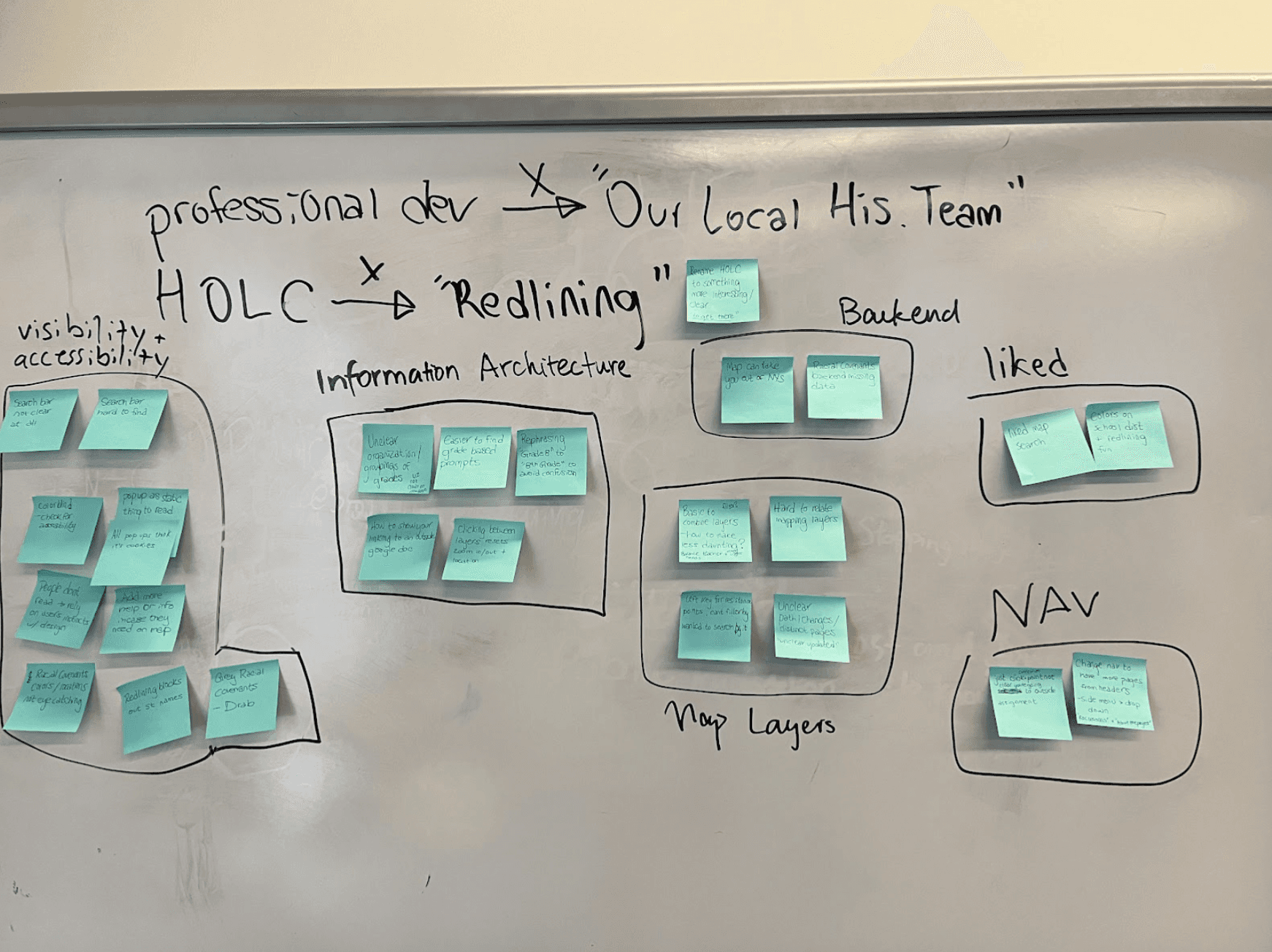 With our first round of research collected, the team reconvened to plan the site redesign. We wanted to review the data we collected to help inform our project. We used different design thinking strategies to help us get started.