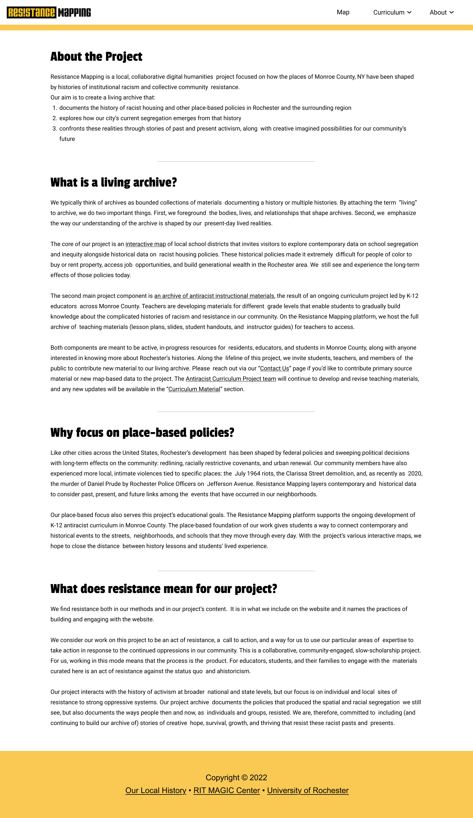 Resistance Mapping was built specifically to teach users about place-based racism in Rochester, but now they want to expand to all of NY State.